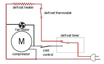 Timer có chức năng ngắt điện vào máy nén và cấp điện cho hệ thống điện trở xả đá để tẩy tuyết dàn lạnh. Tùy theo cấu tạo của timer, thời gian xả đá có thể 6h, 8h, 12h, 24h (thông thường ở Việt Nam lạnh lạnh dùng timer 8h). Thời gian xả đá từ từ 18 – 30 phút.